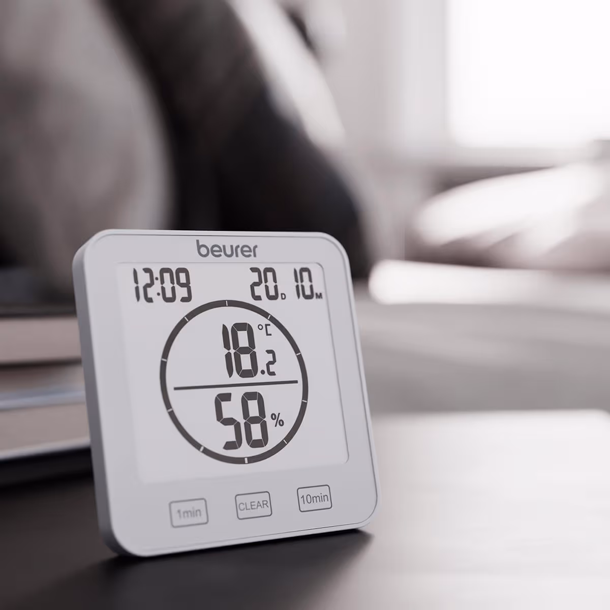Med Beurer HM22 termometer og hygrometer kan du nemt holde øje med både temperatur og luftfugtighed i dit hjem.