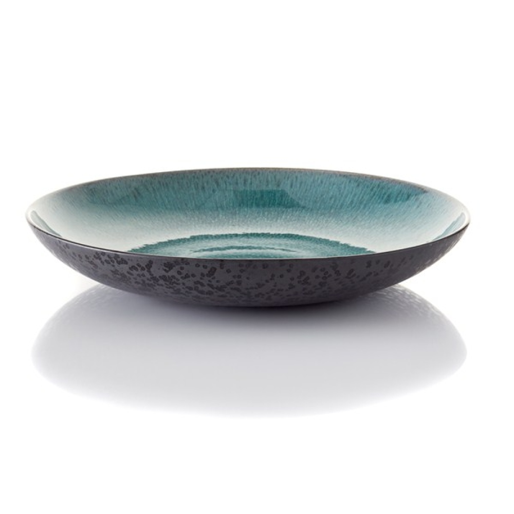 Bitz Fad fremstillet i mat sort/blank grøn stentøj dia. 40 cm.