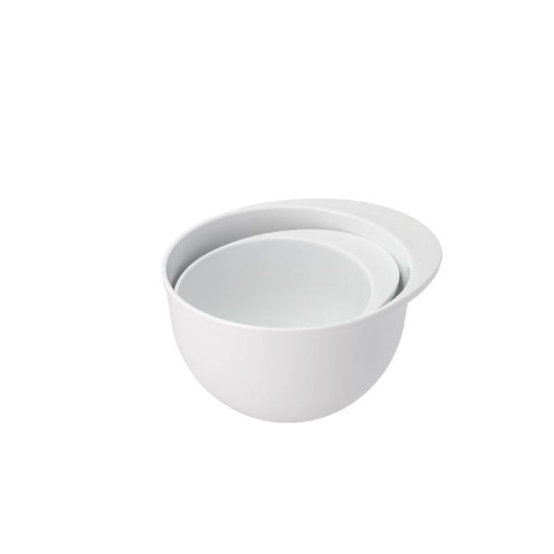 De to skåle i sættet er i størrelserne 1,5 og 3 liter, og det store greb i skålenes ene side er superbehageligt at holde fast i og giver et godt greb, mens du arbejder.