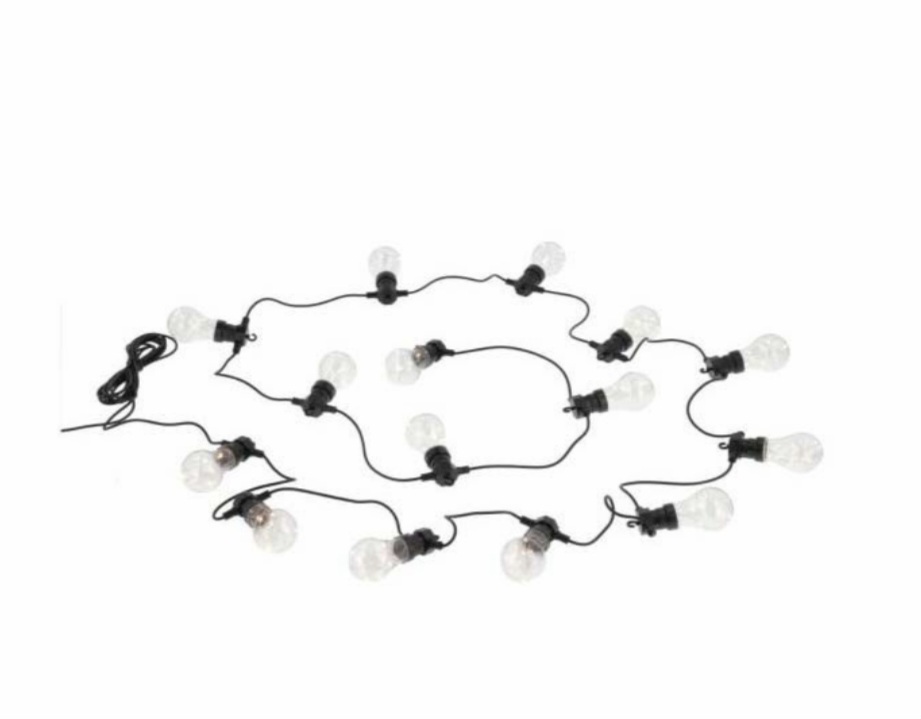 Lad Lyset skinne klart, Denne 9,2 meter lange LED lyskæde har 15 transparente pærer i plastik.