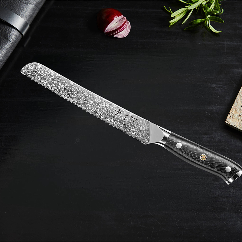 Klingen er fremstillet af 67 lag smedet Damascus-stål, som sikrer en enestående kombination af skarphed, styrke og holdbarhed.