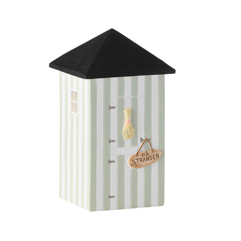 Badehuset Stribben emmer af dansk sommeridyl og minder om dage fyldt med sol, strandture og den friske brise fra havet. Brug det som en del af din sommerudsmykning – placer det i vindueskarmen, pynt det med sten og muslinger fra stranden, eller sæt det sammen med et af Klarborgs badebørn for et ekstra fint sommerunivers.