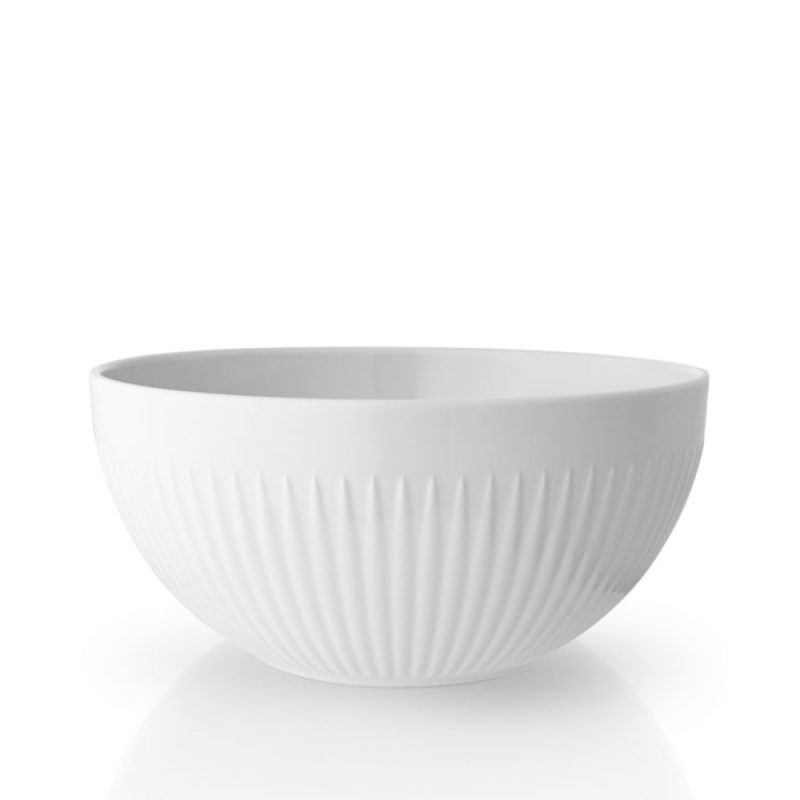 Eva Trio Legio Nova er en nyfortolkning af det klassiske Eva Trio Legio stel, designet af Ole Palsby. Med sin rillede, delikate dekoration står Legio Nova smukt alene, men kan også med fordel matches med Legio stellets tidløse enkelthed. Brug Eva Trio Legio Nova skålen som en elegant ramme om enhver anretning. Skålen pynter på gæstebordet og er samtidig skabt til brug i hverdagen. Skålen passer med Eva Trio grydelåg, og man kan derfor bruge den til opbevaring af rester i køleskabet uden brug af stanniol eller film. Legio Nova stellet er fremstillet i porcelæn af høj kvalitet og har 10 års porcelænsgaranti. Skålen tåler både ovn, mikroovn, fryser og maskinopvask.