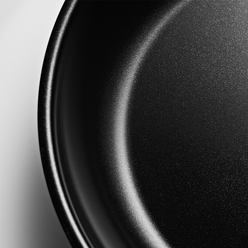 Panden er fremstillet af 90 procent genanvendt post consumer rustfrit stål, som sikrer en robust og slidstærk konstruktion, der samtidig er nem at holde flot. Den indvendige keramiske Slip Let belægning reducerer risikoen for, at maden klæber eller brænder fast, og gør både madlavning og rengøring lettere. Stegepanden tåler temperaturer op til 400 °C, er modstandsdygtig over for ridser, kan anvendes på alle varmekilder og tåler opvaskemaskine, hvilket gør den til en praktisk og holdbar løsning i det moderne køkken.