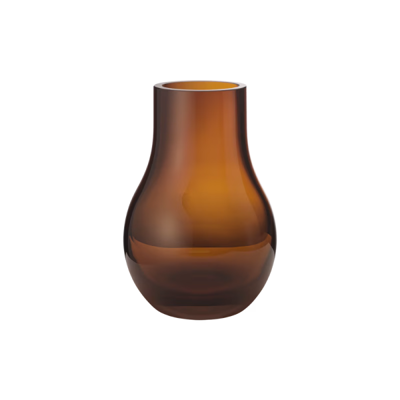 Georg Jensens CAFU vase i amberglas er en smuk og stilren tilføjelse til enhver boligindretning. Denne mundblæste vase er unik i sin form og tilføjer et sofistikeret element til både spisebordet eller vindueskarmen.