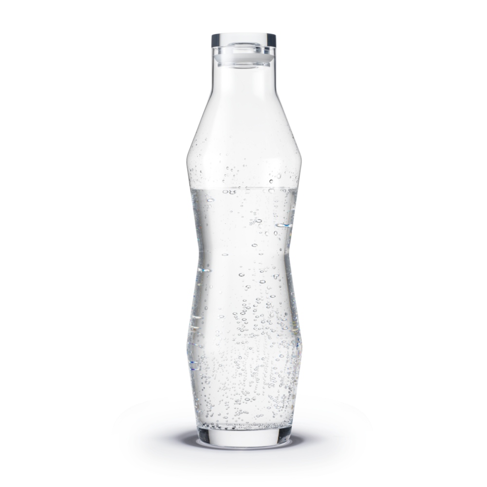 Karaflen har en smal talje, som giver et godt greb til at holde og hælde vand. Vandkaraflen har en volumen på 1,1 liter og passer perfekt i køleskabsdøren uden at optage for meget plads.