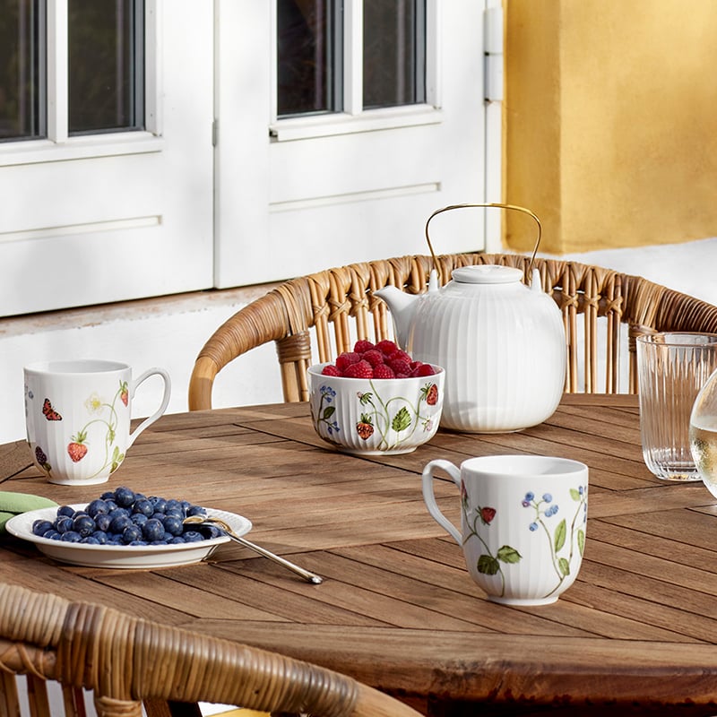 Denne fine skål prydes af saftige sommerbær og en livlig sommerfugl, der sammen med de ikoniske riller giver et elegant og let udtryk. Perfekt til servering på altanen, terrassen eller i sommerhuset, hvor naturens nærvær og hyggelige stunder er i centrum.