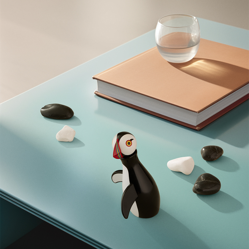 Den nye miniudgave måler 13,5 cm og er fremstillet med stor præcision i FSC®-certificeret bøgetræ. Hver detalje, fra det karakteristiske næb til de udtryksfulde øjne, er omhyggeligt udført for at bevare det venlige og autentiske udtryk, der har gjort søpapegøjen til et elsket samleobjekt.