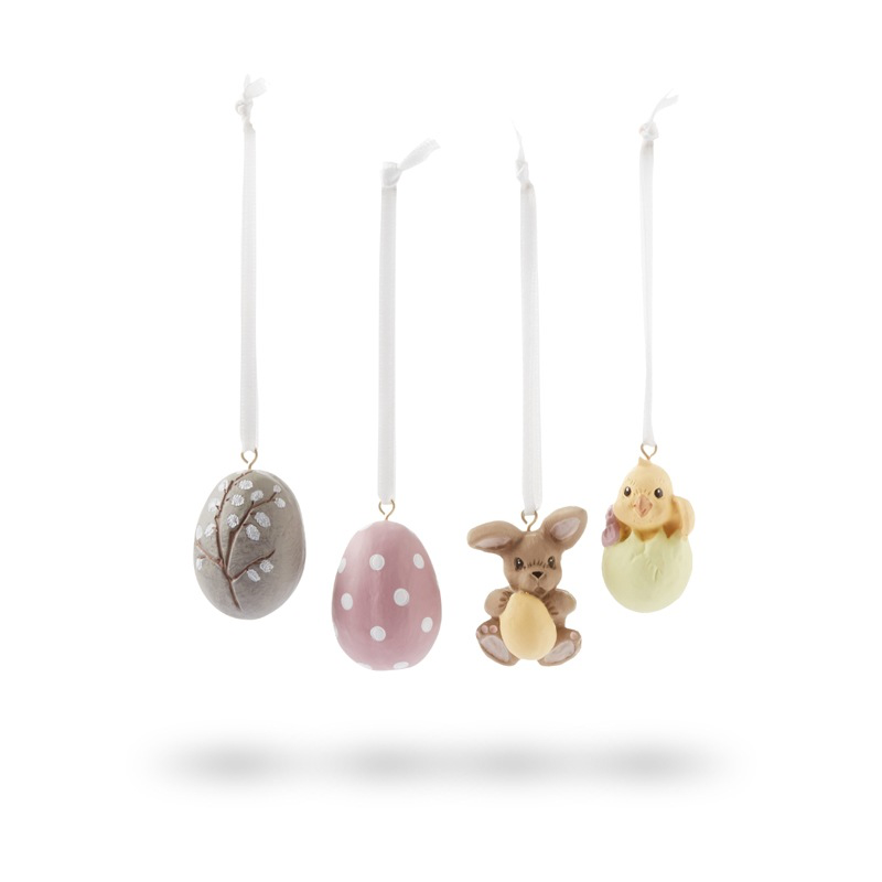 Bring forårets lys og glæde ind i hjemmet med denne charmerende æske med 4 forårsdyrebørn-ophæng, designet af Etly Klarborg.