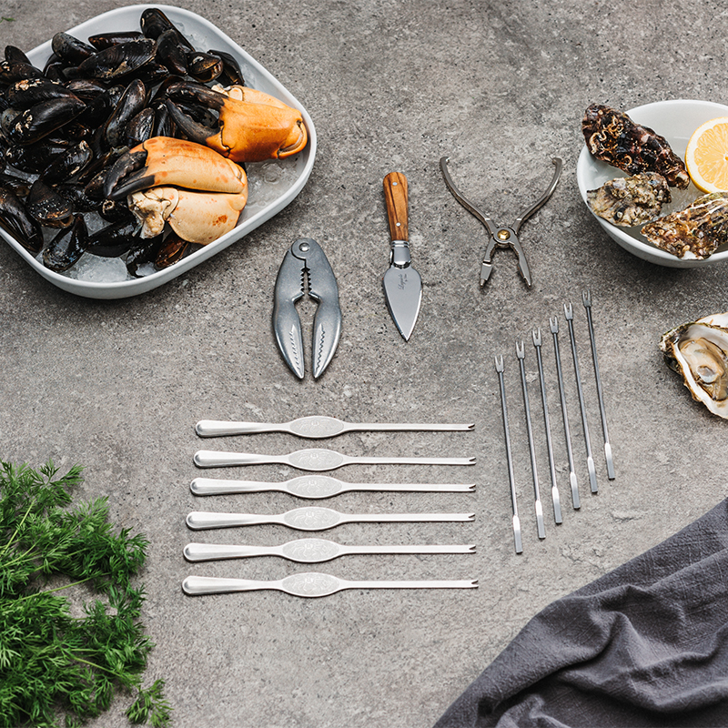 Gør dine skaldyrsmiddage både elegante og ubesværede med dette eksklusive skaldyrssæt fra Hâws Laguiole-serien.