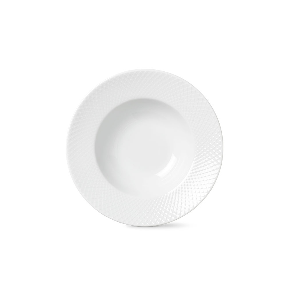 En smuk tallerken fra Rhombe-serien designet af Lyngby Porcelæn. Tallerknen er ideel til pastaretter og supper, hvorfor den også har fået sit navn – Rhombe pastatallerken. Den smukke tallerken måler 24,5 cm i diameter. Denne fine og stilrene tallerken har en tydelig sammenhæng med Rhombe-stelserien. Det fine porcelænsdesign med det diskrete mønster tydeliggør referencen til serien. Brug pastatallerkenen til hverdag eller til særlige begivenheder. Lad dine gæster nyde det smukke udtryk, som tallerknen giver. Den smukke tallerken fra Lyngby vil pryde ethvert bord med et klassisk og meget fint udtryk. På grund af sit fine udtryk vil tallerknen kunne indgå som et indretningselement i et glasskab. Rhombe tallerkenen har 2 års brudgaranti.
