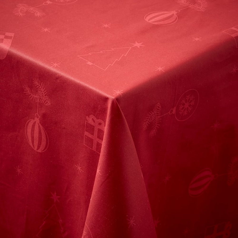 Skab den perfekte julestemning i dit hjem med denne elegante Damask Juletid dug fra Nordisk Tekstil, der præsenterer sig i en smuk, dyb rød farve. Denne dug er ikke blot en praktisk del af din borddækning; den tilføjer også en festlig atmosfære, der gør enhver middag til en særlig begivenhed. Det diskrete julemotiv på dugen spreder en hyggelig julestemning, hvilket gør den ideel til både hverdag og festlige lejligheder i juletiden.