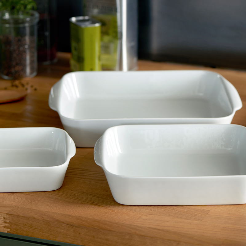 Sættet består af tre ovnfaste fade i forskellige størrelser, der gør det nemt at tilberede alt fra gratiner og ovnretter til desserter og tilbehør – og servere dem direkte på bordet med stil.