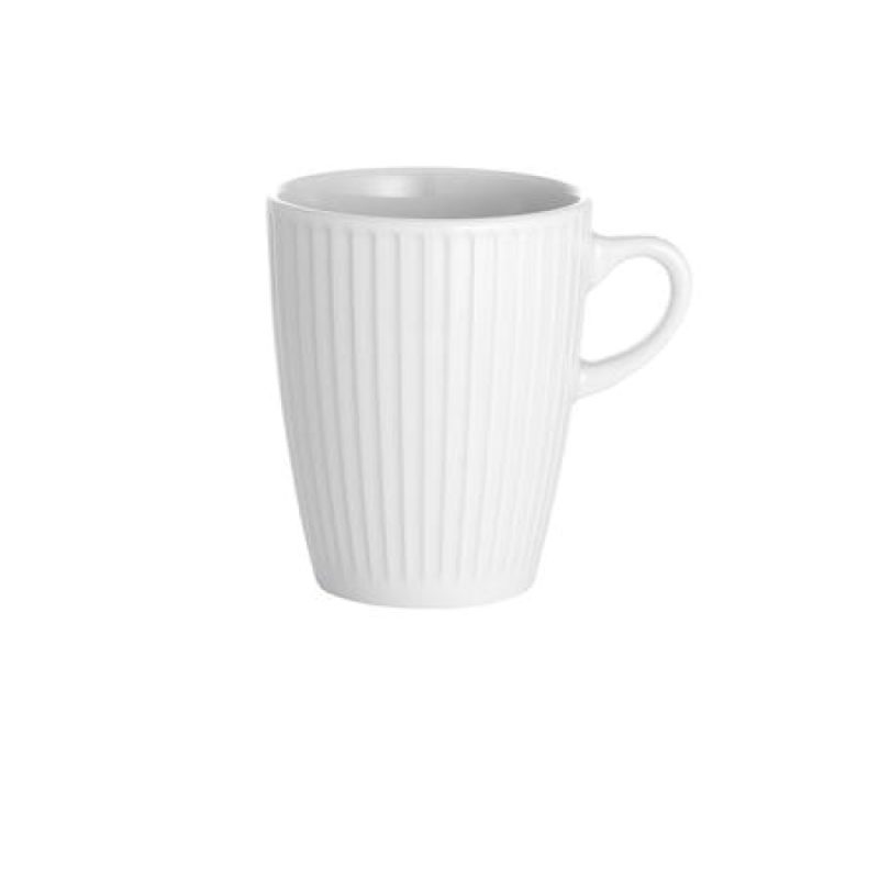Stel i ekstra stærk og holdbart porcelæn med ekstrem hård glasur, som gør det modstandsdygtigt overfor slag, stød og store temperaturforskelle – med plisseret væg.