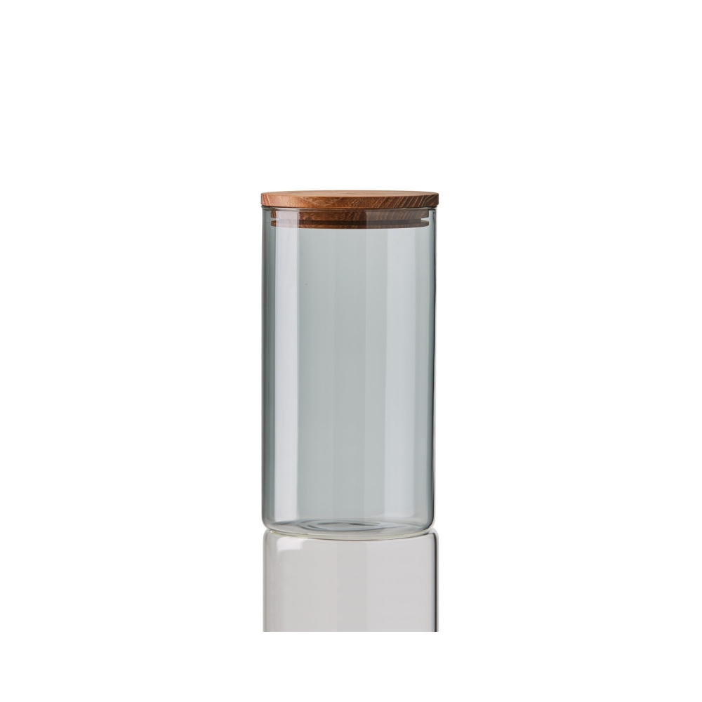 RAW – Opbevaringsglas mellem smoke glas, teaktræ-låg
