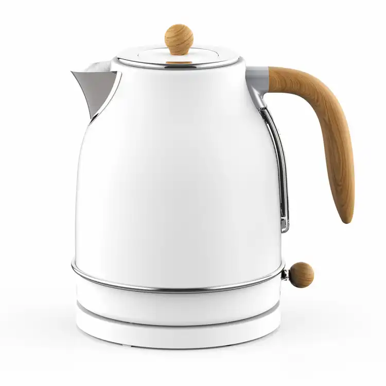 Oplev den stilfulde hvide elkedel i rustfrit stål, der kombinerer funktionalitet med et elegant design. Keddelen har en praktisk tænd-/sluk-indikator, der gør det nemt at se, hvornår den er i brug. Den kommer med et låg, der har en praktisk knop, så du nemt kan åbne den for at fylde vand på.